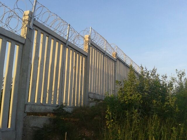(4)的下缘距离钢筋混凝士防护栅栏上缘的垂直距离为0.05m.铁路刺丝滚笼是近年防护、隔离能力较强的新型产品,广泛用于高档住宅小区、、重要仓库、监狱、边防军事重地等需要封锁围禁场所。它的主要构件有:刀刺滚笼( 由锋利的刀片和高抗拉强度的芯线构成)、纵向挂丝、立柱支架、加密支架、支架抱箍。安装好的刺丝滚笼能很好地起到阻挡闯入者的作用