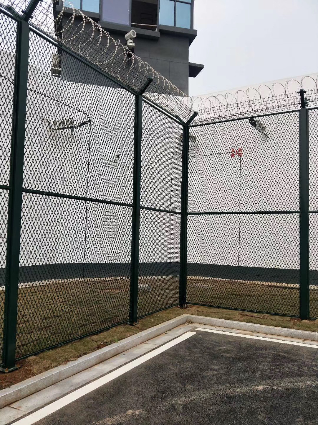 监狱隔离网属于高戒备防护设施,用于监狱、看守所、戒毒所、少管所、军事基地等等地方的防护警戒。可以有效地防止攀爬翻越。监狱隔离网分为不同的网面和样式,但是基本上都是采用低碳钢材制作生产。但是由于低碳钢材属于易腐蚀的材料,为了增强其防腐蚀性能必须进行表面处理。 我们常用的防腐蚀表面处理方式一般有四种:冷镀锌、热镀锌、喷塑、浸塑,我们对几种防腐蚀处理进行了一个比较: 首先我们来说下镀锌的比较: 上锌量:冷镀锌<热镀锌 防腐性能:冷镀锌<热镀锌 成本:冷镀锌<热镀锌 热镀锌一般 喷塑与浸塑 塑层厚度:喷塑<浸塑 防腐性能:喷塑<浸塑 成本:喷塑<浸塑