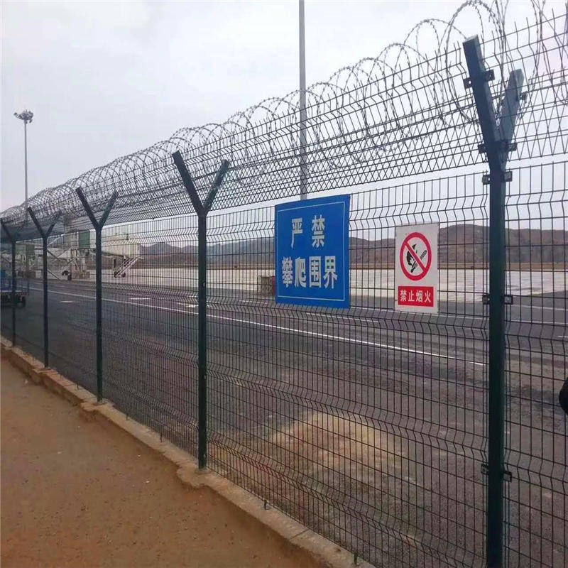 4.强度:机场三角折弯护栏网通过高强度、高韧性的钢材制成,即便在大风、垂直冲击、偏向冲击等情况下,也能够充分保护机场及其周边设施的安全。